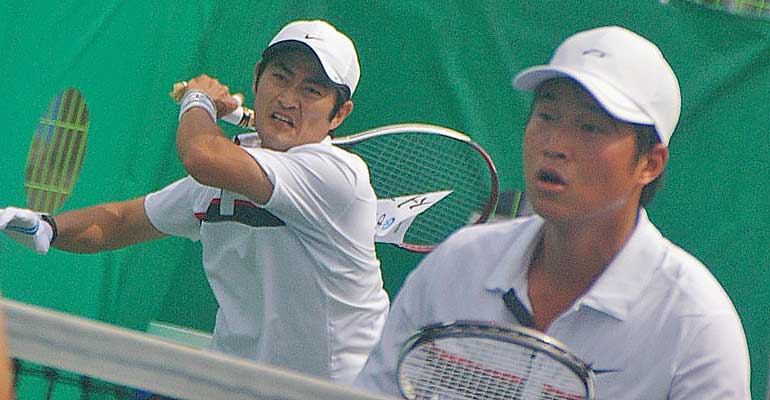 2004年韓国大統領旗シングルスファイナリスト、国家代表決定戦でも最終リーグまで勝ち上がり、世界選手権二冠の方峻煥のペアとして代表にも名を連ねた韓国期待のサウスポー徐教源(セオ・ギョウォン-光州東区庁)のバックハンド。