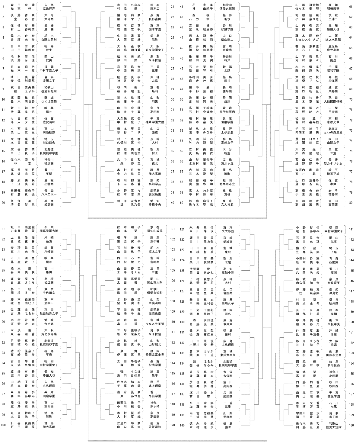 インターハイ組み合わせ 女子個人戦 Share (画像クリックで拡大)NO.1-NO,160 NO.161-NO.320 More from my site森田・山下の時代到来か? 全日本インドア初優勝!学連トップは猛者、天才の集合体だ!!大学王座観戦ノススメ(改訂版)イスヨル・パクキュチョル、林佑澤・余凱文が出場 YONEX CUP2014国際札幌大会10年振り再結成!篠原・菅野 熊本インドアに登場 2月15日 全日本インドア出場選手!!男子 水澤・長江 女子 森田・山下 YONEX CUP2014 国際札幌大会 Comments comments « インターハイ組み合わせ 男子団体戦 インターハイ男子個人戦 組み合わせ »