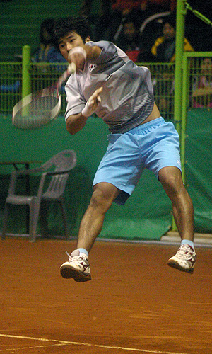 2008アジア選手権ダブルス決勝でのイヒョンス。ソウル市体育局のヤンヂンハンとのペアで開催国ワイルドカードでの出場だったが、二回戦で篠原・小林に完勝、決勝では中堀・高川を相手に劇的な勝利をおさめ優勝。