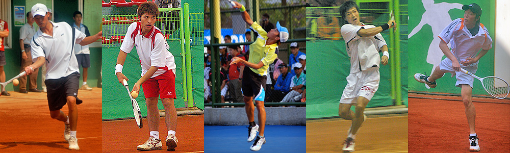 今大会男子シングルスの中心の3人。左からキムドンフン、長江光一、ハンジュオン