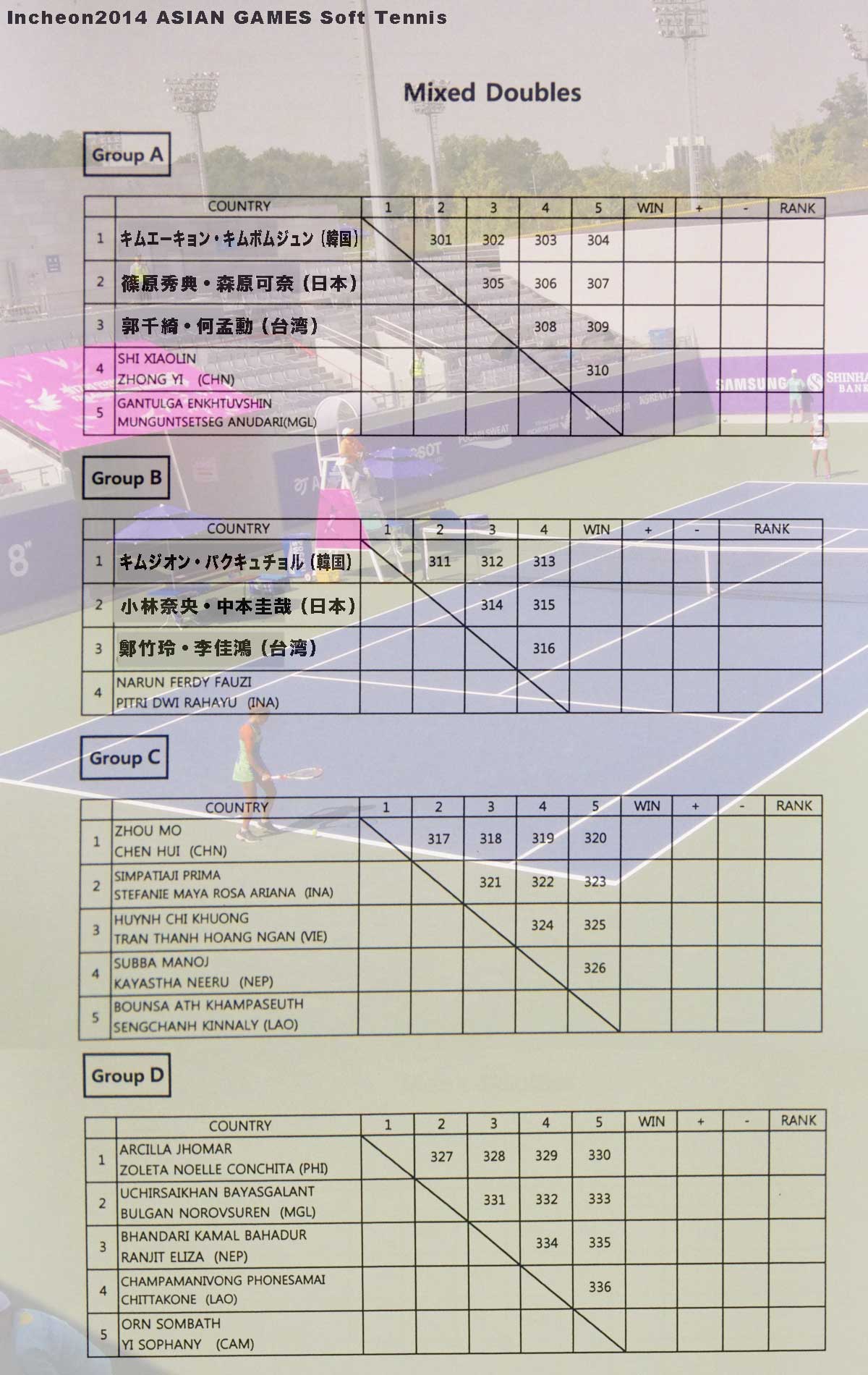インチョンアジア競技大会 ミックスダブルス組み合わせ Share ミックスダブルスは10月1日に競技される予定。 More from my siteインターハイ 7月28日〜8月4日 奈良県明日香村牙決勝ラウンド進出ならず!2013東アジア競技大会ミックスダブルスでの小林・横山上宮団体戦も制す インターハイ2015 男子団体戦 森原・篠原 第6回東アジア競技大会ミックスダブルス大金星!!初出場の横山。2013東アジア競技大会女子シングルス Comments comments « 大庭、鄭竹玲、キムボミが同組 インチョンアジア競技大会女子シングルス組み合わせ インチョンアジア競技大会 女子ダブルス組み合わせ。 »