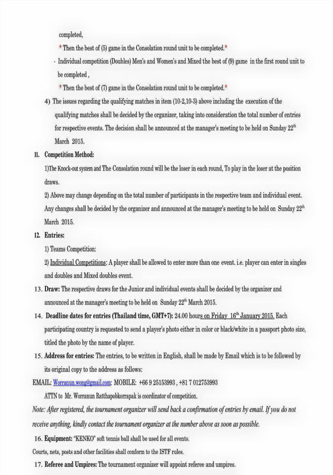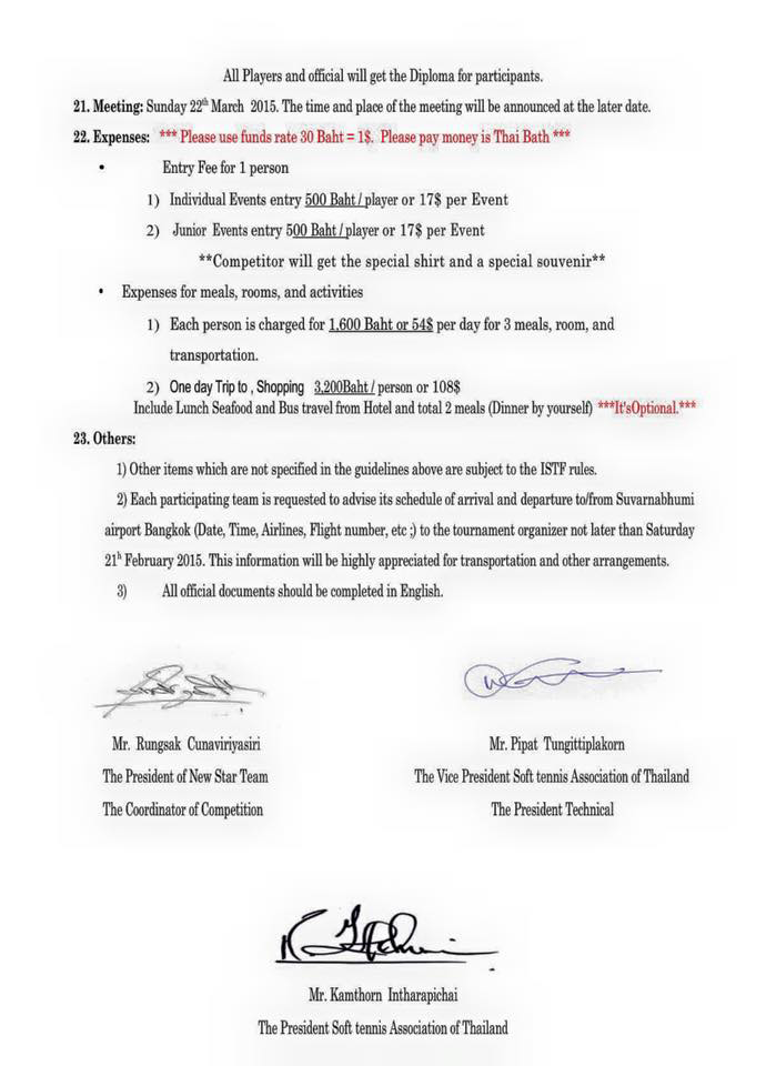 第4回タイランドオープン開催!!The 4th Thailand Open International Soft Tennis Championship 2015 on March 21th -29th,2015