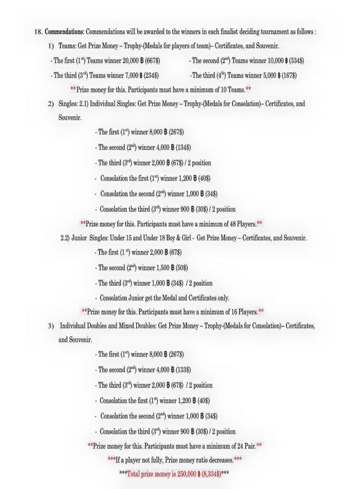 大会は3月23〜27日 バンコク。団体戦と個人戦5種目のフルセット。1